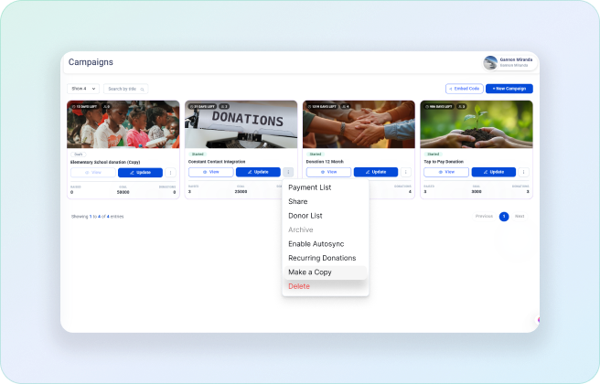 Duplicate existing campaigns to quickly recreate successful fundraisers without starting from scratch.