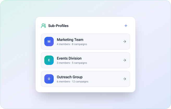 Create multiple sub-profiles under one account, so teams or individuals can independently manage their campaigns.