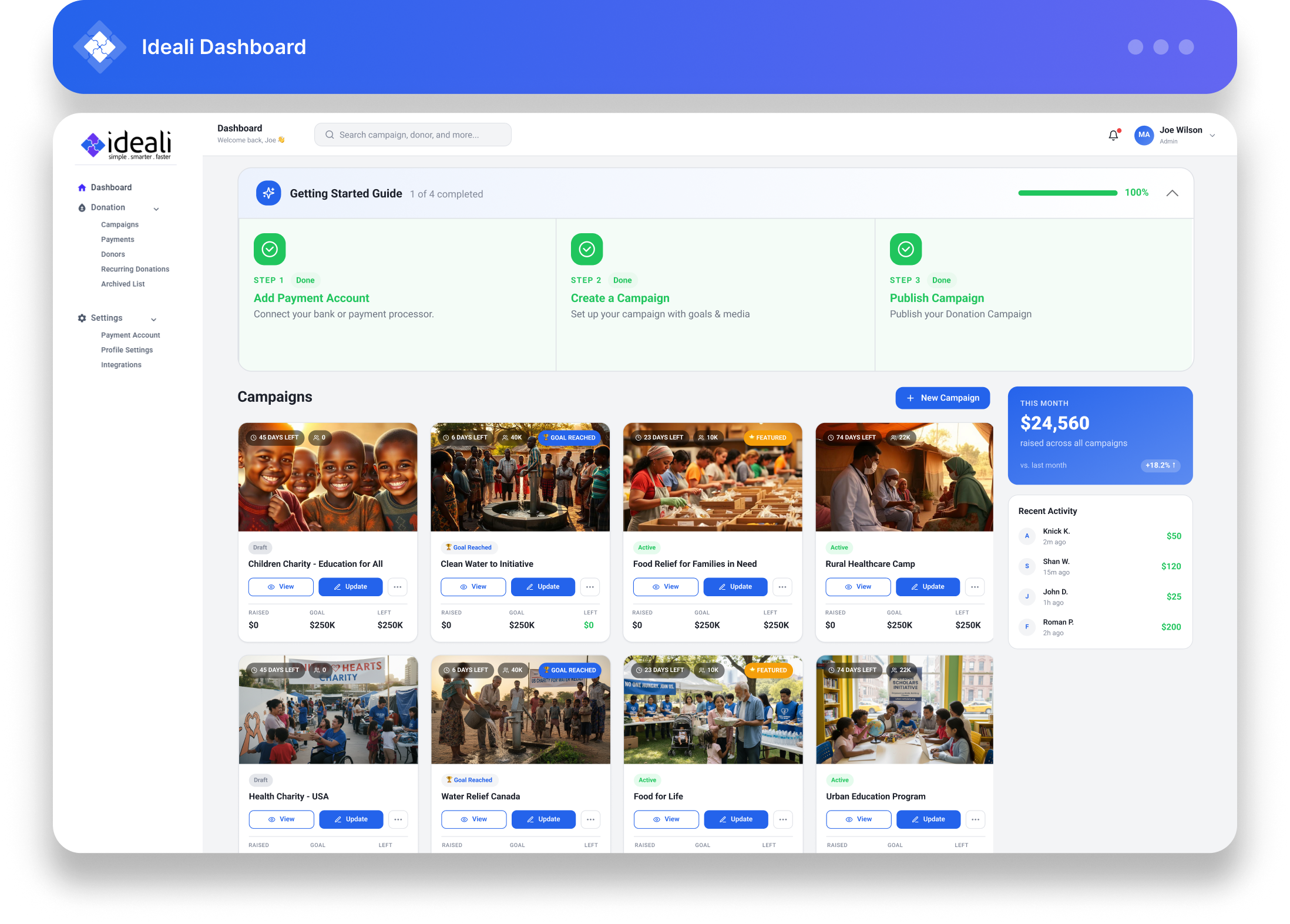 Sign up for free today and discover how Ideali can transform your fundraising.